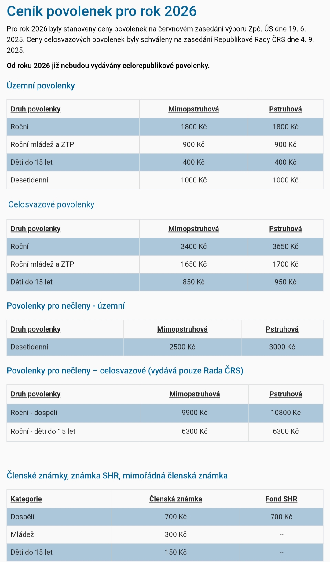 Stanovení ceny za neodevzdanou, nebo pozdě odevzdanou povolenku: ceník zde.